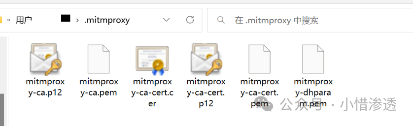然后记得装一下mitmproxy的证书,先运行一下,然后在用户目录的.mitmproxy文件夹下会生成
