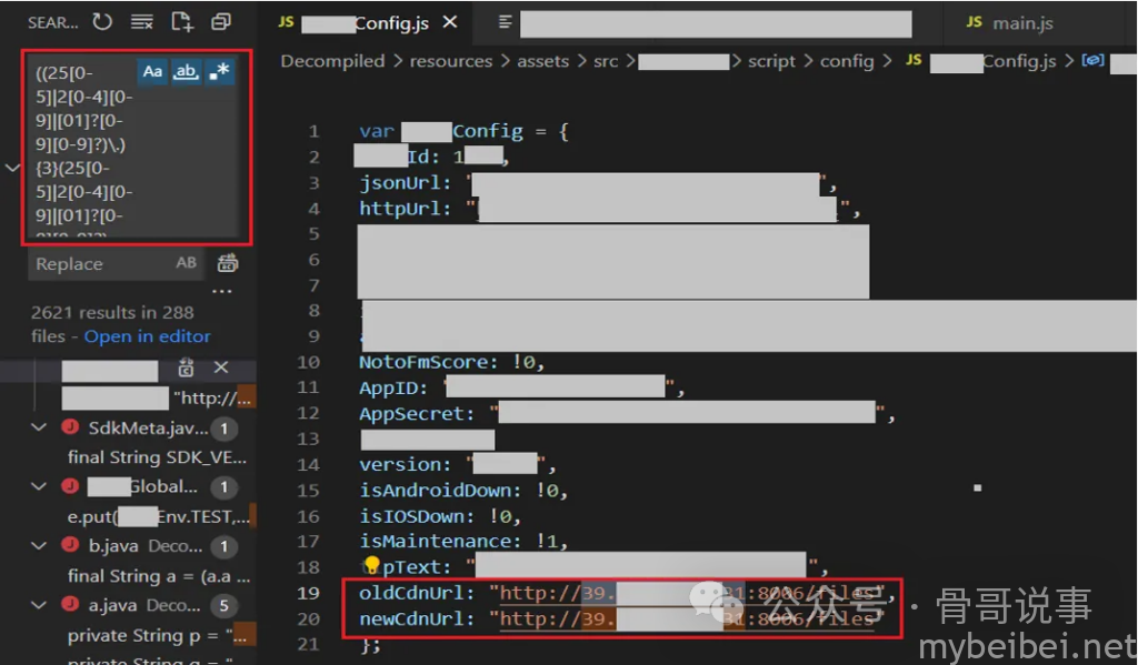 在JSC文件被解密后,就能够轻松阅读JS源代码了。代码审计过程中,在一个解密的配置文件中发现了一个有趣的IP地址。