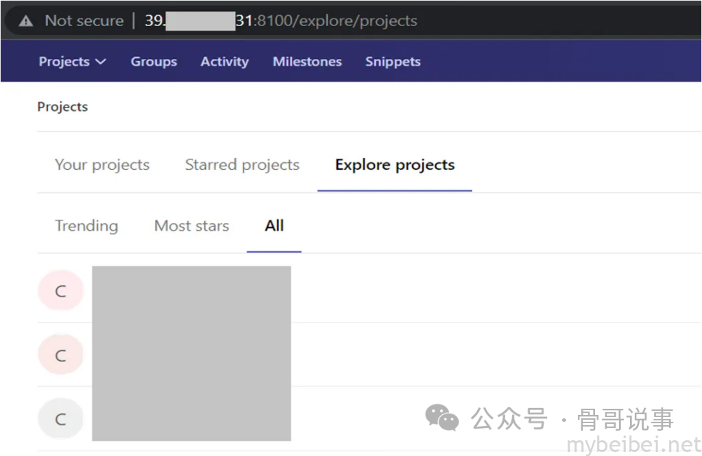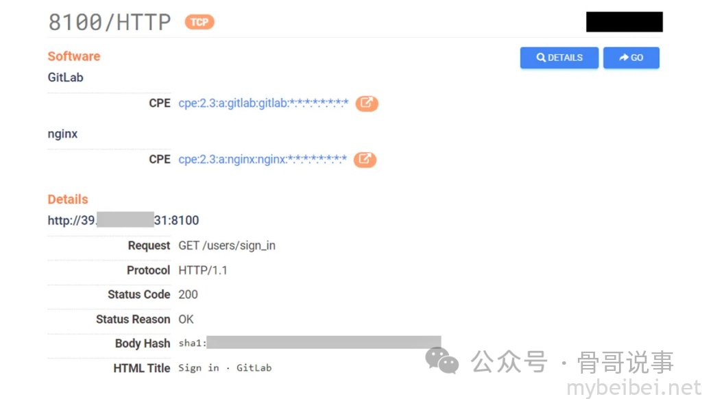 因此考虑使用了另一种方法来检测开放端口,尝试使用Shodan/Censys,发现了一个运行GitLab的开放端口8100。