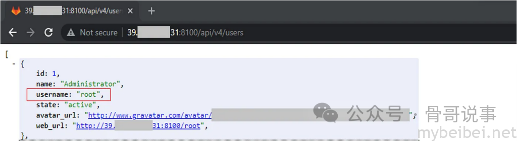 注册登录后,发现没有公共项目可供普通用户权限的账户使用。然后在使用过程中发现一处API端点api/v4/users,在这里成功找到了管理员的用户名。