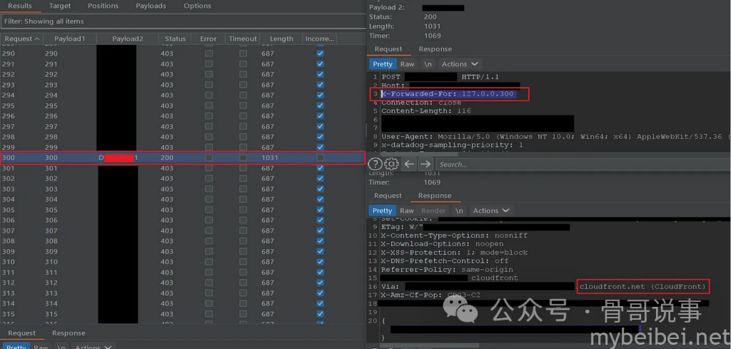 然后网站使用了WAF来防止暴力破解,最终通过利用X-Forwarded-For:127.0.0.$1$ 实现绕过WAF防护。