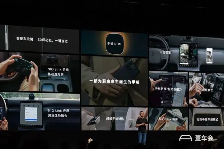 从硬件配置来看,蔚来 NIO Phone 称得上是一台旗舰级的手机,搭载高通骁龙 8 Gen2 领先版,最高 16GB+1T 内存组合可选,其 6.81 英寸屏幕支持 1-120Hz 可变刷新率,拥有 5000 万广角 + 超广角 + 潜望长焦后置三摄。当场下有观众喊「遥遥领先」的时候,李斌笑着回应说:「不是遥遥领先,但很好用。」NIO Phone 的价格也非常「旗舰」,6499 元的起售价格与市场的主流旗舰如苹果 iPhone 15、华为 Mate60 Pro 等机型的价格相差无几。作为「最适合蔚来车主的手机」,NIO Phone 还配备了 UWB 超带宽技术,可以精准识别手机和车辆的距离,并同时进行多台车管理。在无电关机情况下,48 小时内依然可以通过 NFC 解锁车辆。其机身左侧还配有一个「车控键」,车主可以通过这个按键快速实现车辆启动、遥控泊车、守卫模式等数十项功能。当然,最能体现「车手互联」的功能还是基于 NIO Link 实现的「天空视窗」,将手机屏幕映射到中控屏中,直接打通二者的物理屏障。只是,消费者永远比产品经理更严苛,经过一段时间的市场检验,NIO Phone 的这些特性并未获得多少好评,反而遭到了不少吐槽,被指「提升不大」。以最具特色的「车控键」为例,虽然这枚按键集成了 30 项车手互联功能,但诸如车辆状态、开关空调等常用功能,均可通过蔚来 App 实现,二者的体验并无太大差异。唯一称得上比较实用的,或许只剩在手机和车机间实现文本和数据流转的 NIO Link。整体看来,NIO Phone 并不会为车主的用车体验带来质的改变,且在另一方面,NIO Phone 作为一台手机,实在是难称「旗舰」。功能缺失太严重了,像是云服务、长截图、高级计算器这些,相机的白平衡也很不稳定。