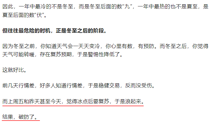 节后上周小心翼翼赚点钱,各种担惊受怕的。终于在这两天,预期冰点反弹,把利润全都浪没了。