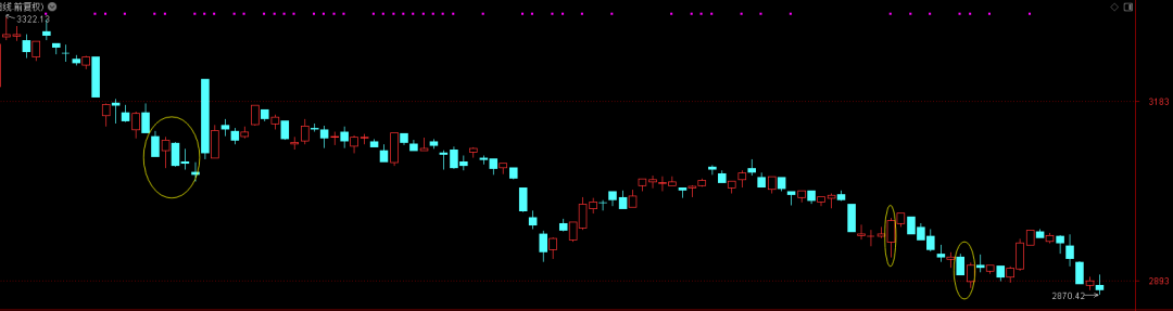 如今看指数,会有点下跌中继的意思,几根阴线后两根十字星调整,这的确是下跌中继。