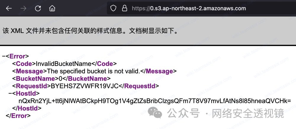 这样通过返回内容的不同,就可以进行 Bucket 名称爆破了,知道 Bucket 名称后,Key 的爆破也就很容易了。