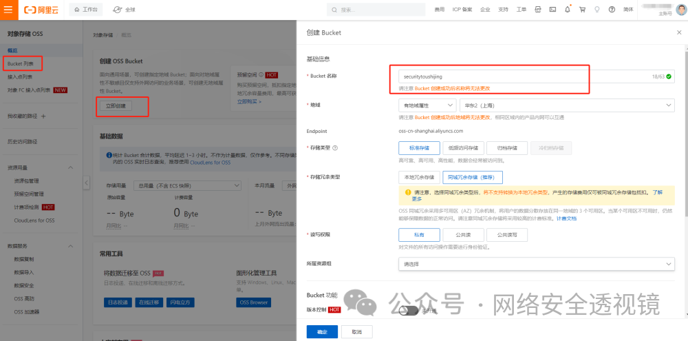 然后去阿里云存储桶重新创建一个与HostID一样的存储桶名称