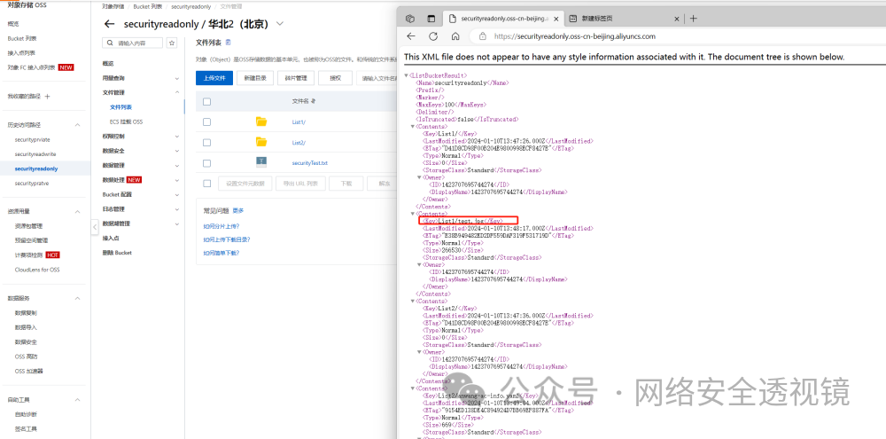OSS存储里面有种类似列目录的漏洞,会显示当前存储下所有的文件存储路径。