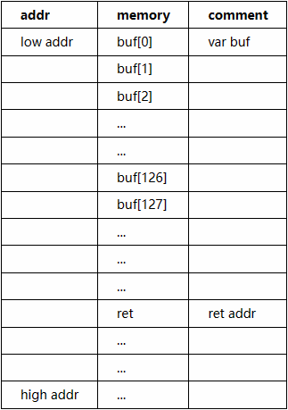 得知以上这些信息后就可以组合payload了,布局如下。其中 shellcode + nop 长度是140。ret 填充buf的地址,也就是现在的shellcode位置。