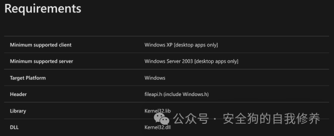 深入研究 CreateFileW 的第一步是确定实现此函数的动态链接库 (DLL) 。DLL 是创建共享功能的二进制文件(实现代码的文件)。这个想法是,当每个程序员正在执行的任务是常见且可预测的时,重新发明轮子是没有意义的。相反,该功能可以而且应该集成到 DLL 中,然后应用程序可以引用这些 DLL。Win32 API 在一组默认或内置 DLL 中实现,用于应用程序使用的函数标记为“导出的函数”。若要确定哪个 DLL 实现或导出 CreateFileW,我们可以参考该函数的公共文档。在要求部分,我们看到 CreateFileW 是由 kernel32.dll 实现的。