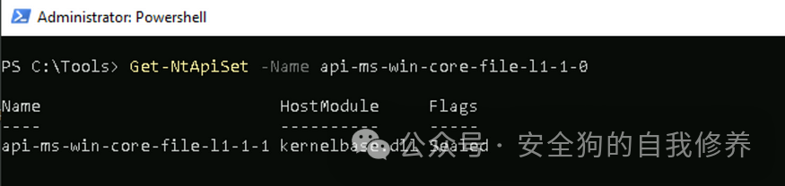 在上一节中,我们发现 kernel32!CreateFileW 正在导入 api-ms-win-core-file-l1–1–0!CreateFileW。api-ms-win-core-file-l1–1–0 组件是指较新版本的 Windows 中存在的一种称为 API 集的技术。API 集对用户和开发人员是透明的,但对我们来说,了解如何导航它们以继续深入研究 CreateFileW 实现非常重要。杰夫·查佩尔(Geoff Chappell)在他的博客上出色地记录了这项技术。请注意,有许多与文件相关的 API 都重定向到相同的库名称。此库用作 CreateFileW 的第三个实现的重定向器,但此版本的实现驻留在何处并不明显。为了弄清楚 CreateFileW 的实现位于何处,我们必须“解析”API 集以确定它指向执行的位置。这可以使用 James Forshaw 出色的 PowerShell 模块 NtObjectManager 来完成,该模块具有一个名为 Get-NtApiSet 的超级有用的 cmdlet。此 cmdlet 将 API 集解析为其重定向 DLL。
