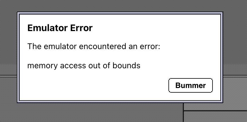 总之,网页版的模拟器暂时没搞定调试。一旦产生未被映射的无效地址访问,就会像这样: