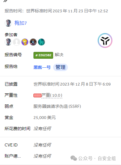 这个是来自于hackerone自己的漏洞,赏金直接给到了25000美元,毫不吝啬的给到了严重级别的评级,没有降级。(没有对比没有伤害)