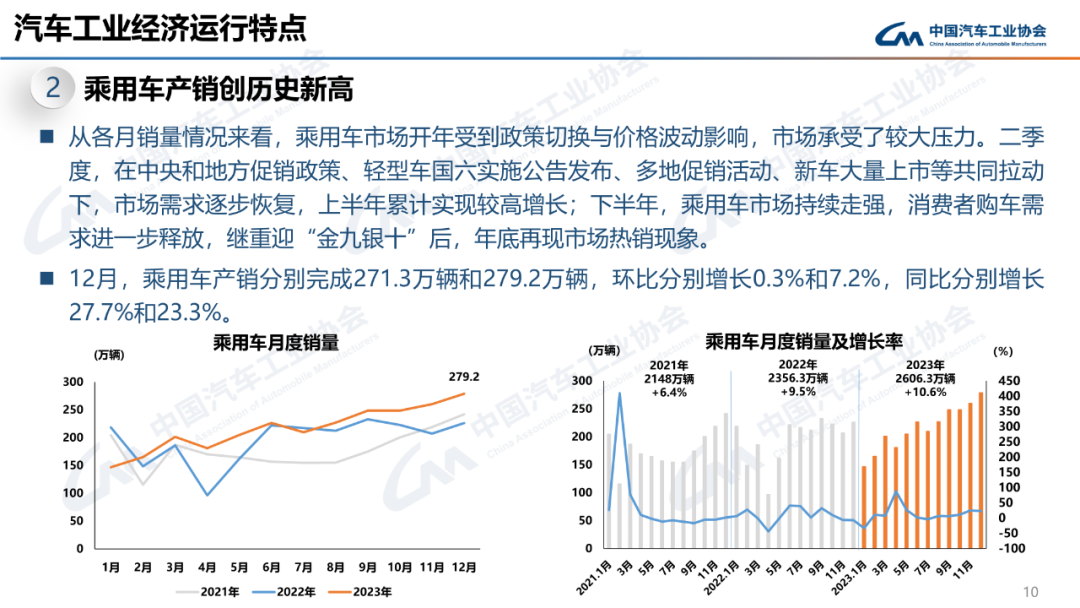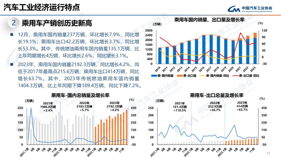 陈士华:乘用车在2023年车市的增长中扮演着重要作用,产销量分别增长9.6%和10.6%,推动车市整体呈现不错的发展态势。