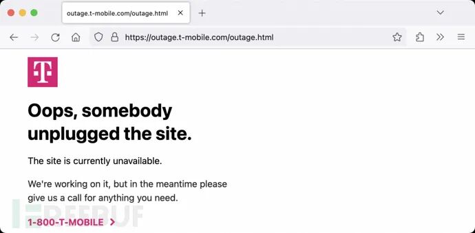 T-Mobile 网站上显示的错误提示(来源:Bleeping Computer)