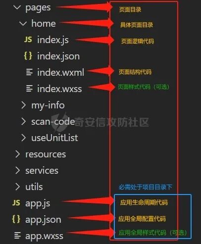 一个小程序主体部分由三个文件组成,必须放在项目的根目录,如下: