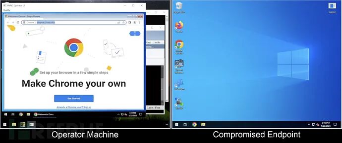 3、服务器端和操作端UI:服务器端负责监听来自HVNC Shellcode的连接,UI允许操作者与远程桌面交互(当前仅支持Windows操作系统);