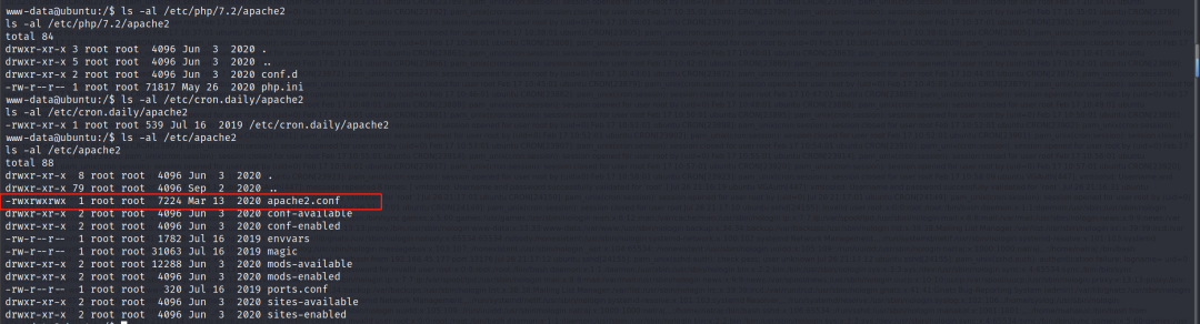 www-data @ubuntu:/var/www/html/console$ cp /etc/apache2/apache2.conf .