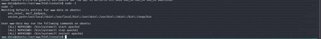 www-data @ubuntu:/var/www/html/console$ sudo -l