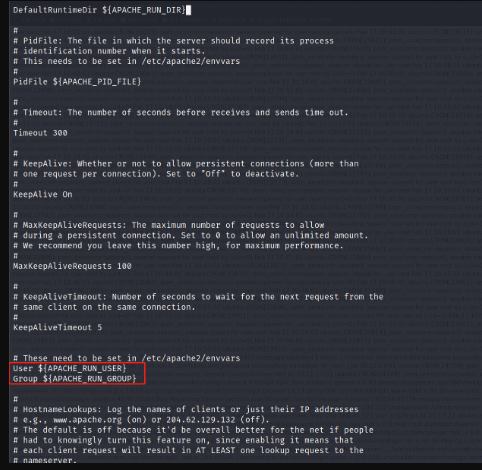 www-data @ubuntu:/var/www/html/console$ sed -i 's/User ${APACHE_RUN_USER}/User root/g' apache2.conf