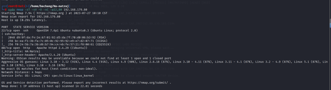 └─# sudo nmap -sT -sV -O -sC -p22,80 192.168.179.80