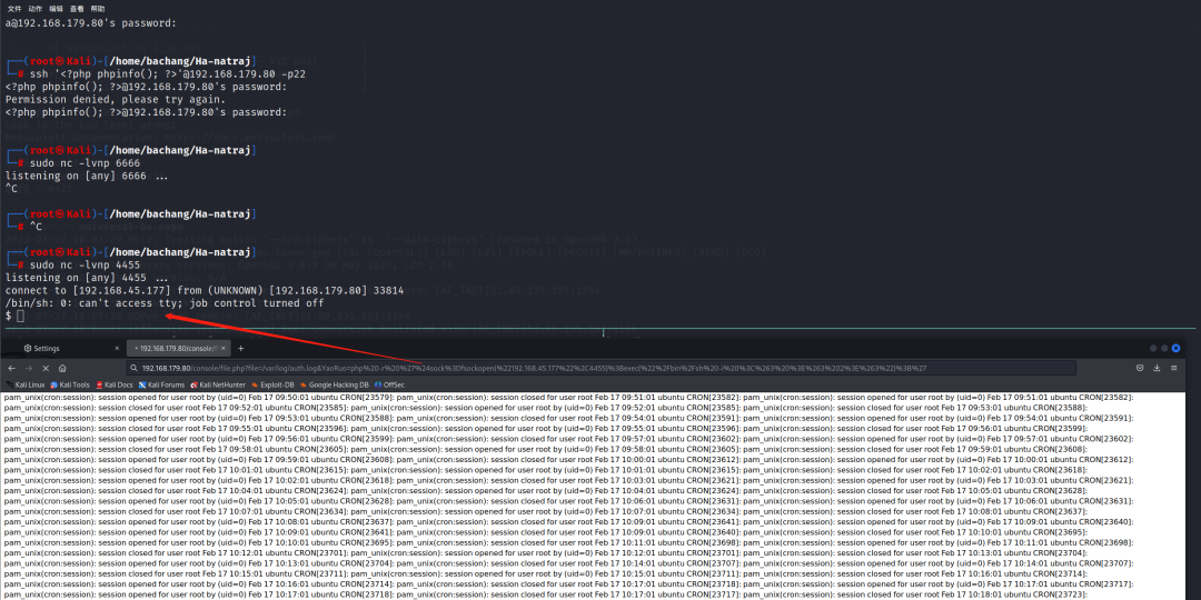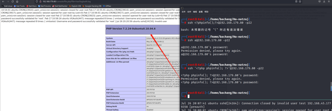 所以我应该确认是文件读取还是包含,根据ssh可以登录我们查看一下ssh的日志处/var/log/auth.log