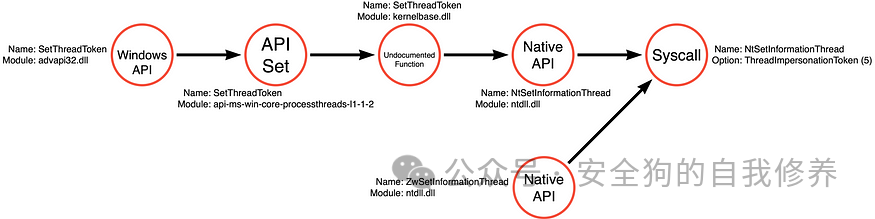 下面是函数调用路径,后跟 。Like or 是一个简单的函数,它只执行一个操作,即 Thread Write(它使用 将所需的令牌写入线程)。SetThreadTokenReadProcessMemoryOpenProcessSetThreadTokenNtSetInformationThread