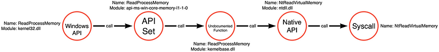 回想一下,本系列的第 2 部分引入了一个新的操作抽象层,它允许我们按目的论(基于函数的目的、目标、目的或目标)对函数进行分组。例如,属于进程读取操作,因为它负责允许应用程序读取进程的易失性内存。同时,在第 3 部分中,我们演示了如何为给定操作组合多个单独的函数调用路径,以形成与操作一致的函数调用图,并描述执行特定操作的所有已知功能选项。ReadProcessMemory