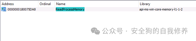 可以通过查阅 的导入表找到使用的确切版本。似乎调用 .ReadProcessMemorykernel32.dllToolhelp32ReadProcessMemoryapi-ms-win-core-memory-l1–1–2!ReadProcessMemory