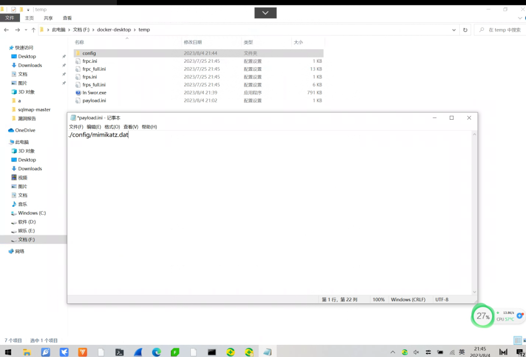 更改payload.ini下的加载路径,加载不同的功能,比如mimikatz
