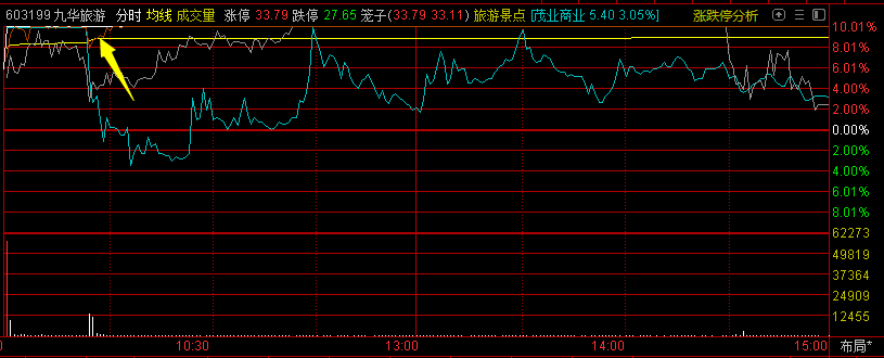 大连圣亚跟着回调,不过幅度低一些倒还行,但最强的还是九华旅游,稍微开个口立即封死了。