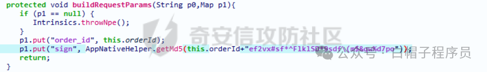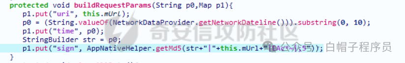 在 sign 的搜索结果中,随意点开一个 buildRequestParams 方法。