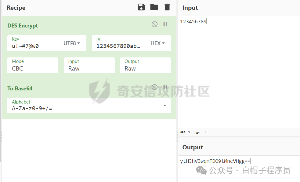 那么可以得出,这是一个 DES/CBC/PKCS7Padding 加密。字符串形式秘钥是 u!~#7@w0,16进制 iv 是 1234567890abcdef。