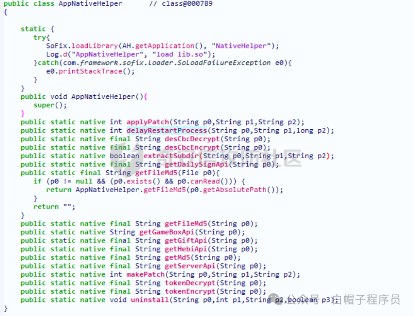 这个类的功能,通过上述代码可知,是加载了 libNativeHelper.so ,然后调用了里面的 native 方法。
