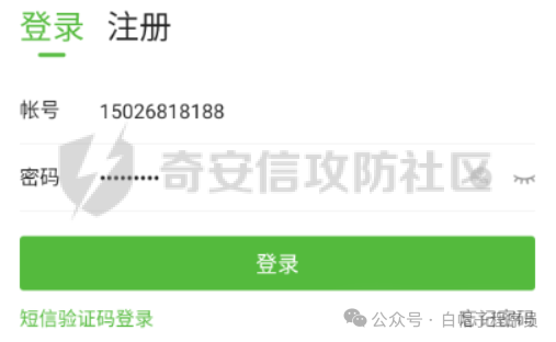 进入 App 的登录界面,输入账号:15026818188,密码:123456789。