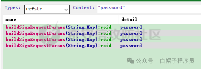 在 password 的搜索结果中,随意点开一个 buildRequestParams 方法。
