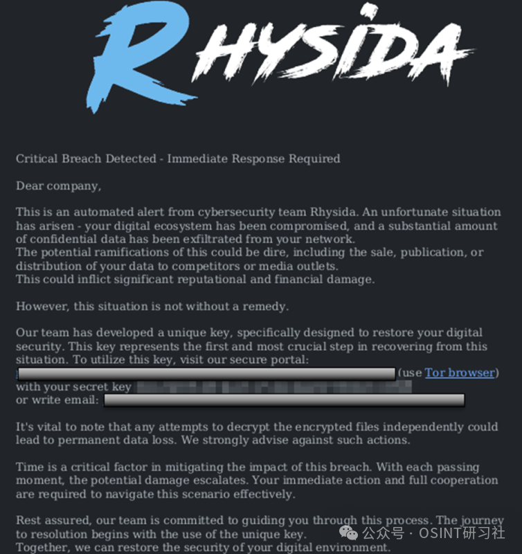 Rhysida 运营商出于经济动机,利用双重勒索攻击迫使受害者付款。除了加密受害者数据外,他们还窃取数据,并威胁如果不支付赎金就公布敏感信息