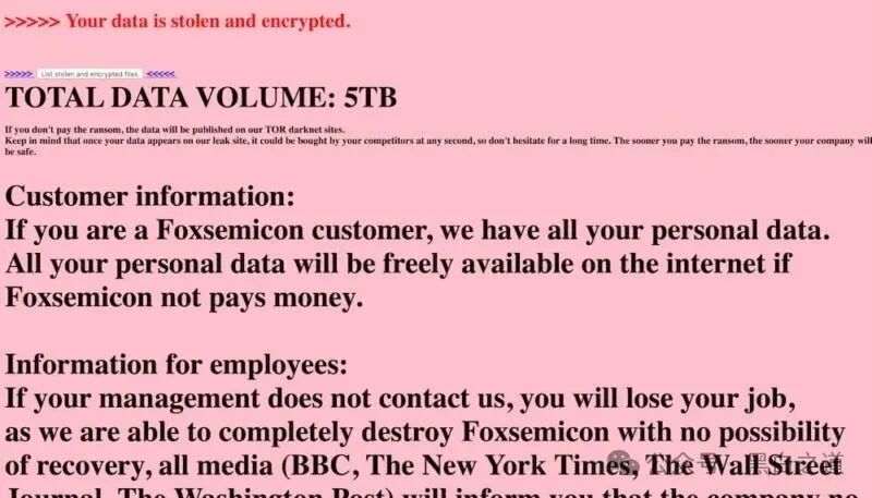 富士康集团旗下半导体设备大厂京鼎遭黑客入侵,并被黑客勒索100万美元;
