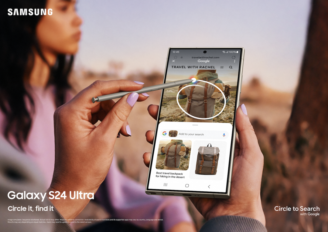 今天凌晨,三星发布了它的首款 AI 手机 Galaxy S24 系列。纵观整场发布会,从实用的通话实时翻译,到便捷的即圈即搜功能;从图片 AI 编辑的细致入微,到 AI 变焦的精准捕捉,三星 Galaxy S24 系列摒弃了华而不实的「炫技」,用一个多小时讲清了 AI 究竟该如何为用户服务。2024 年既是 AI 手机爆发的元年,也是一个摸着石头过河的时期,没有人知晓最理想的 AI 手机该是什么形态。但毋容置疑的是,只有当 AI 手机无缝融入日常生活时,它才算得上是真正的「AI 手机」。而三星 Galaxy S24 系列恰好契合了这一关键条件。去年开始,各大厂商陆续通过 OTA 实现 AI 上机,不过大部分品牌还没有将其放在「C 位」。三星 Galaxy S24 系列则是将 AI 渗透到了手机使用的每个角落,将 AI 从一个「新功能」变成了手机的「一部分」。两分钟,带你「上手」三星 S24 Ultra 的 AI 功能发布会上重点介绍的「即圈即搜」,就是能在大部分操作场景中触发的 AI 功能。比如看见社交媒体上某处能让你「即刻出发」的景点,但又不知道在哪的时候,就可以长按 home 键来搜索图中的准确地点。当我们遇到任何想查阅的图片、视频或文本,都可以长按 home 激活 AI,接着通过圈选、高亮、涂写或点击来对目标内容进行检索。其实之前的手机就有类似的功能,看到短视频中有自己心仪的家具、服饰、美食等,可以通过「识屏」在全网搜索相关产品。相较之下,即圈即搜的优势有两点: