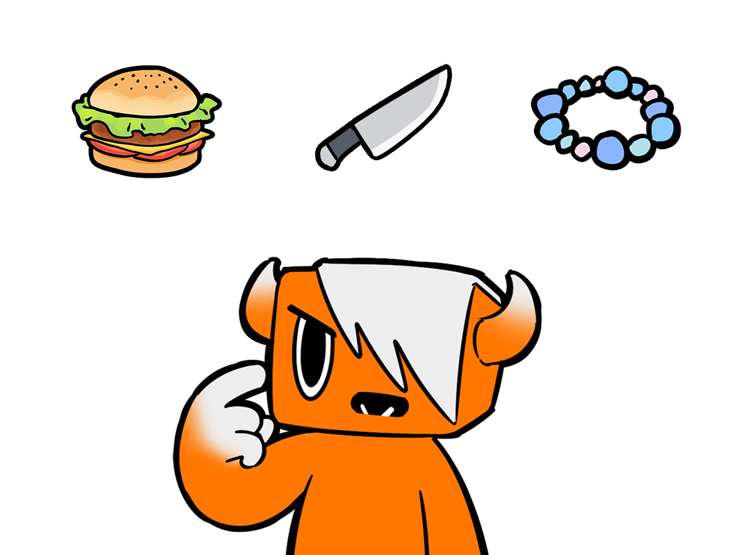 如果你在街上闲逛,在你眼前的摊位上摆着一个汉堡、一把刀和一串手链——如果让你从中挑选一件,那么你会选择哪件物品带走?