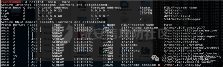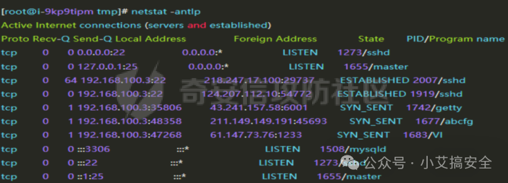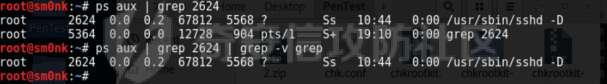 ps axu | grep sshd | grep -v grep查看sshd服务的进程号root