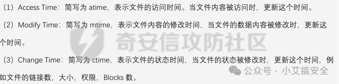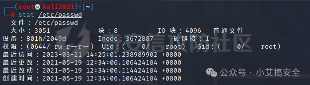 stat可以显示文件的大小、创建时间、修改时间、访问时间、权限、所有者等等信息
