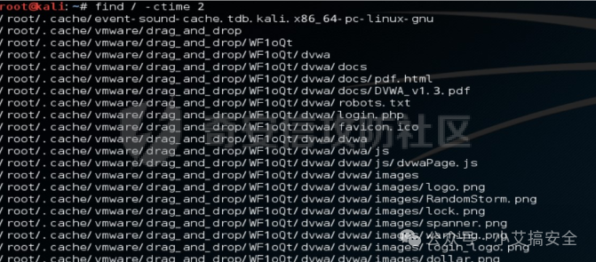 find / -ctime -2 #文件日期、新增文件、可疑/异常文件、最近使用文件、浏览器下载文件