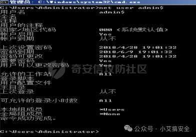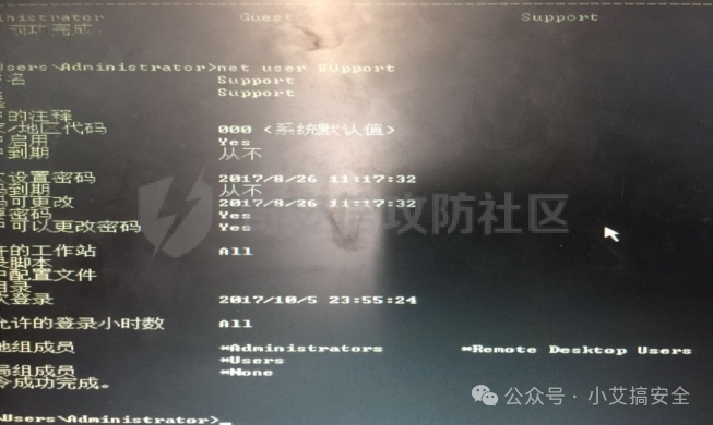 通过查看Sopport账户进行查看发现该账户建立时间为2017/08/26最后登录时间为2017/10/05