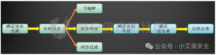 1)首先确定受到攻击、入侵的时间范围,以此为线索,查找这个时间范围内可疑的日志,进一步排查,最终确定攻击者,还原攻击过程;
