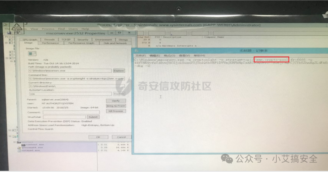 通过查看mscorswv.exe配置发现该程序会连接:xmr.crypt-pool.fr