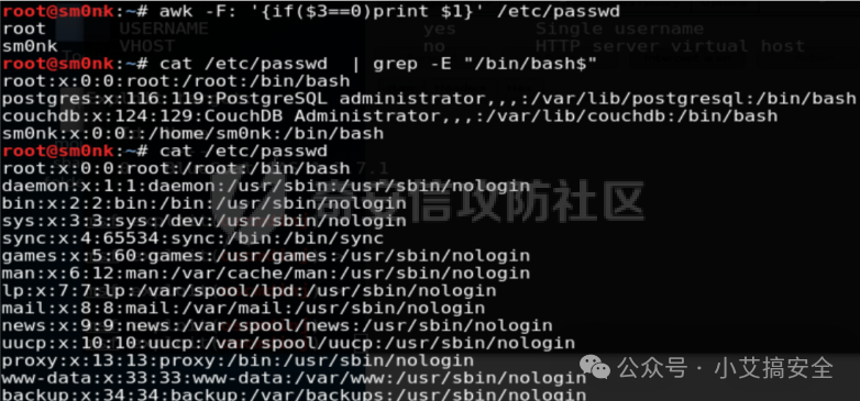 awk -F: '{if($3==0)print $1}' /etc/passwd 查看UID为0的帐号