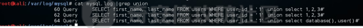 在查询语句中搜索所有关键词为“union”的请求,可以发现 172.24.123.120 在尝试 SQL 注入,类似,通过通过特殊的关键词搜索有无敏感的数据库操作。如读取/etc/passwd 敏感文件,写 webshsll 等;