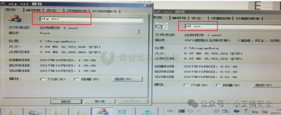 通过对文件分析发现该文件是由alg.exe加载并运行的,通过alg.exe植入时间2017/10/05通过排查系统日志和安全日志发信啊已经被删除最早产生日志的时间为2017/10/06怀疑在黑客操作完成后删除了系统日志
